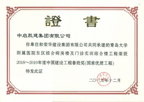 12月10日,由中國建筑業(yè)協(xié)會組織的“建筑業(yè)科技創(chuàng)新暨2018~2019年度中國建設工程魯班獎(國家優(yōu)質(zhì)工程)表彰大會”在北京隆重召開。建筑七公司承建的“青島大學附屬醫(yī)院東區(qū)綜合病房樓及門診實訓綜合樓工程”喜獲國家質(zhì)量最高獎項 “魯班獎”。